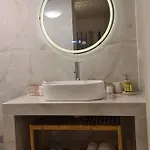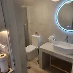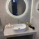 Villa Elia Perigiali Lefkada présente une salle de bains avec une douche à l'italienne. Vous pourrez également profiter du confort d'un sèche-cheveux, des draps de bain et des pantoufles.